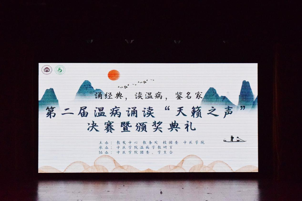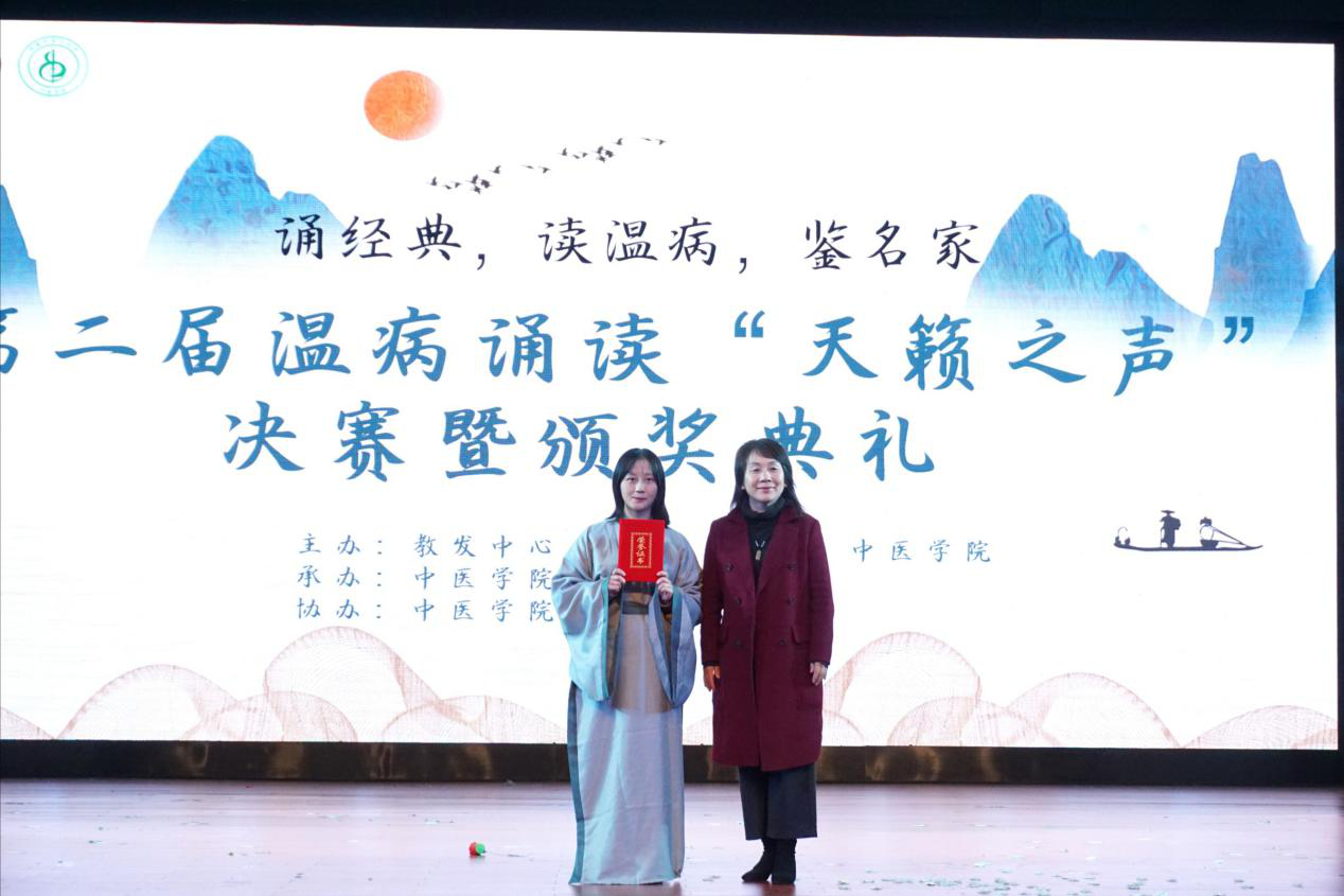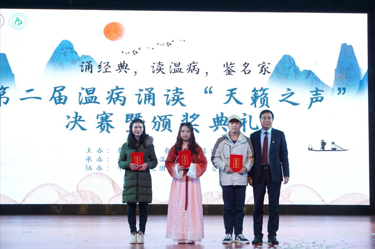 (张湘卓徐媛媛)12月1日晚19时,由教发中心、教务处、校团委和中医学院主办的第二届温病诵读“天籁之声”决赛暨颁奖典礼在大学生活动中心顺利举行。中医学院副院长谢梦洲、温病教研室主任李鑫辉、中医诊断学教研室主任刘旺华、仲景学说教研室主任肖碧跃,学生科科长贺哲淳、中医学院学生科副科长彭烨,学生科辅导员代表、温病教研室全体老师莅临本次大赛。
