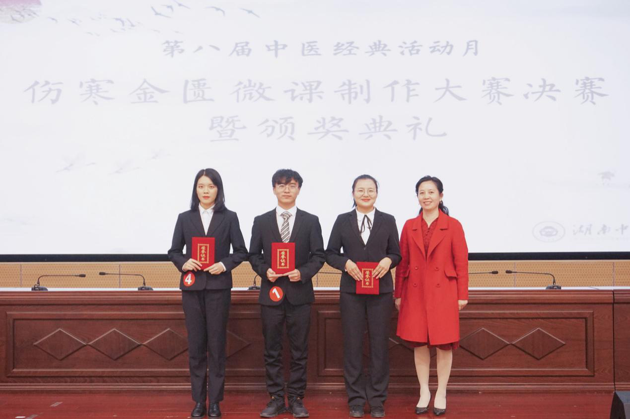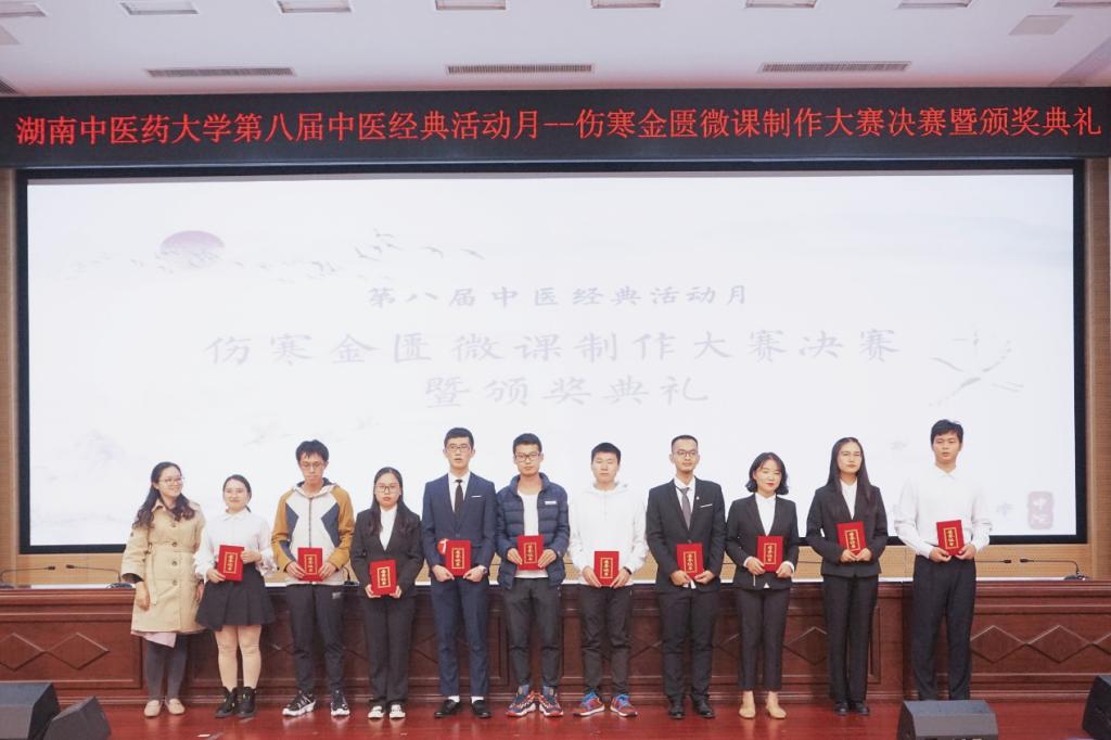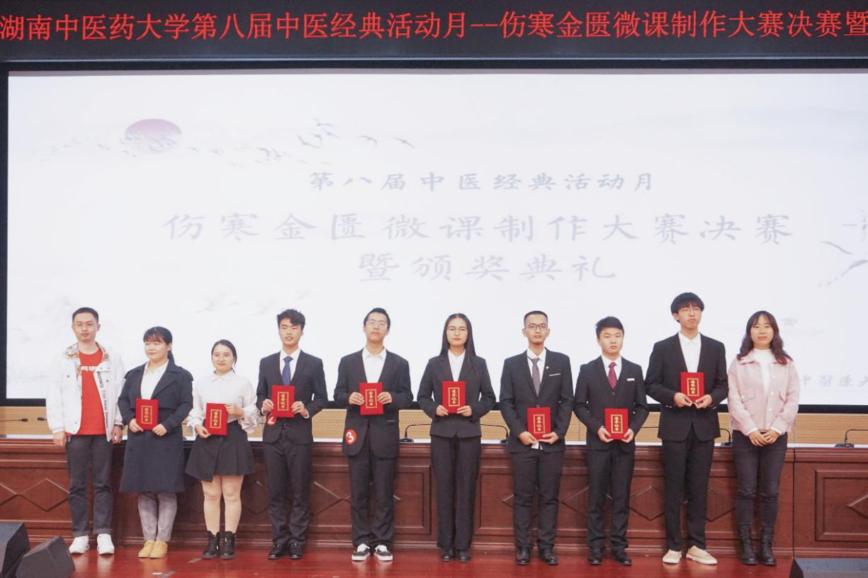 (张湘卓方妍)为弘扬中医经典文化,夯实伤寒理论基础知识,提高我院学子中医素养。112日晚19点,由教发中心、教务处、校团委中医学院主办的第八届中医经典活动月——伤寒金匮微课制作大赛决赛暨颁奖典礼在三教报告厅顺利举行。教发中心处长陈楚淘、教务处处长李铁浪中医学院党委副书记方圆、中医学院副院长胡志希等出席典礼。仲景学说教研室谢雪姣肖碧跃艾碧琛郜文辉刘娟、吴若霞、邹旭峰雎世聪担任大赛评委