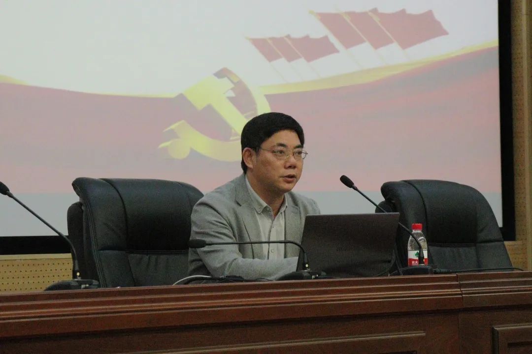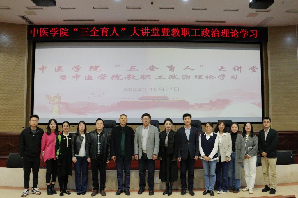 在党的二十大闭幕之际,为深入学习党的二十大精神,中医学院“三全育人”大讲堂暨中医学院教职工政治理论学习专题讲座于2022年10月27日晚在含浦校区第三教学楼学术报告厅举行。长沙理工大学马克思主义学院院长张明海教授应邀作本次专题讲座。中医学院党委书记郭志华、中医学院党委副书记方圆、中医诊断研究所副所长胡志希、中医学院全体教职工、学生党员、发展对象以及分党校第十一期入党积极分子培训班全体学员参加此次专题学习。讲座由中医学院党委书记郭志华主持。