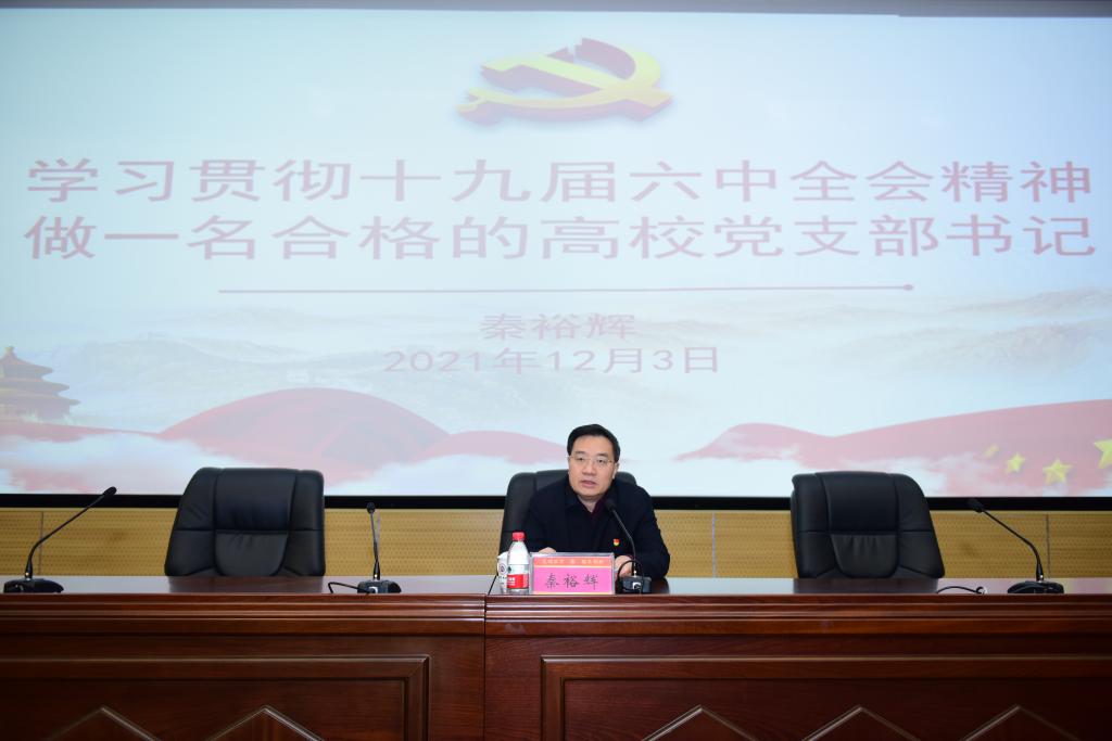 校(院)党委书记秦裕辉结合对党的十九届六中全会精神的解读,就如何做一名新时代合格的高校党支部书记作首场专题辅导报告;校(院)党委副书记易刚强就《中国共产党普通高等学校基层组织工作条例》进行解读。此外,湖南省教育工委组织部副部长刘吉延,校(院)党委委员、组织人事部部长焦珞珈,校(院)纪委副书记谭琥等分别做了专题辅导,4位党支部书记进行了基层党支部党建特色品牌创新与示范案例经验交流分享。