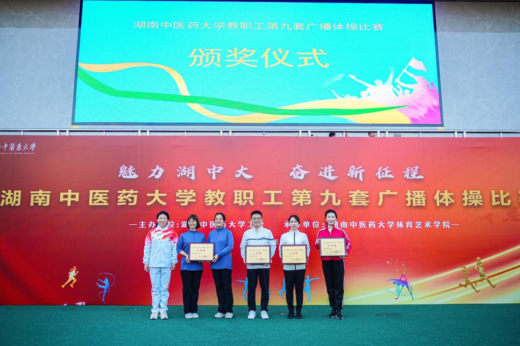 在广播体操团体比赛中,各代表队对广播体操进行了特色改编,使力量美与形体美巧妙地融合在一起,创意别致、精彩纷呈。在广播体操集体表演赛中,420位教职员工跟随节拍律动,他们朝气蓬勃、活力四射、动作整齐划一,展现了强健的体魄与振奋的精神。我校传统保健体育队还展现了精彩的舞狮(龙)传统保健表演。