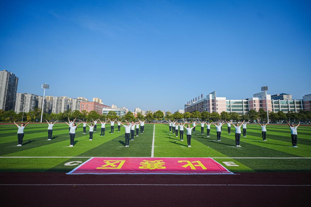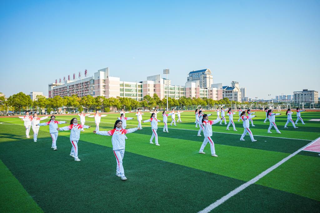 教职工第九套广播体操比赛举行。校党委书记戴爱国,校长易刚强,校党委副书记、校工会主席汤文胜,副校长刘鸿翔、彭清华、廖菁、刘红华,校党委委员、组织人事部部长焦珞珈,以及全校17个分工会的16支代表队共500名教职工相聚含浦校区体育场,共享运动之乐。